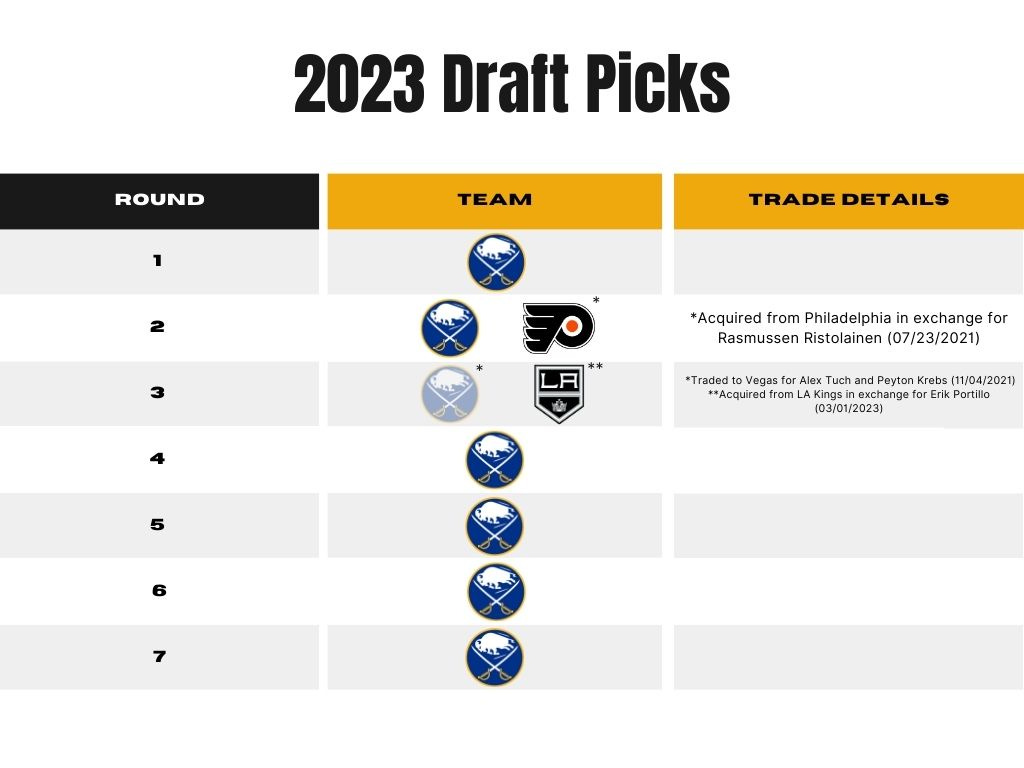 As many of the franchise’s top prospects are now NHL regulars, like Owen Power, JJ Peterka, and Jack Quinn, GM Kevyn Adams refortified the pool with their 2023 draft. Acquiring two first-round picks in addition to their own, Adams added three forwards to go along with their fresh-faced defensive corps.