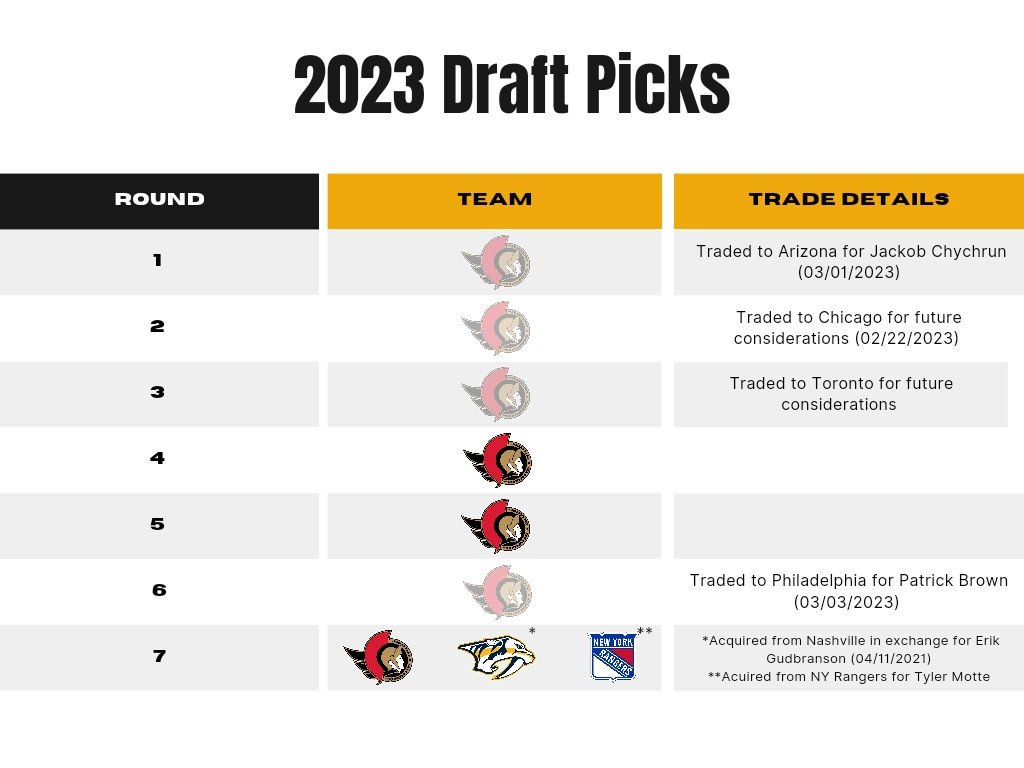 The Senators are left without a pick until the fourth round in the 2023 Draft.